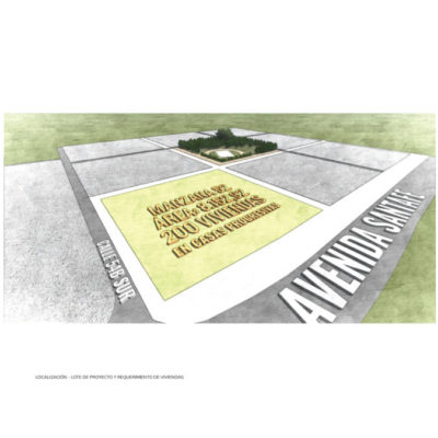 El desarrollo del proyecto Manzana 52 surge de la necesidad de construir 200 viviendas unifamiliares en un lote de 8.152 m2; para dar respuesta al reto de optimización de la ocupación se desarrolló un modelo de vivienda compacta con una huella en primera planta de tan solo 20 m2, con una propuesta de desarrollo progresivo que permite desarrollar dinámicas de autoconstrucción por parte de los habitantes del proyecto.