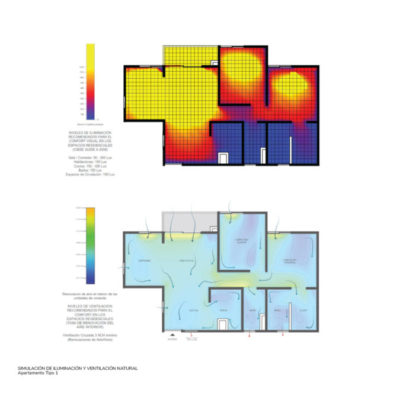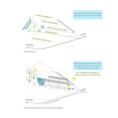 Desde su implantación, Nativa Park desarrolla un planteamiento que permite la reducción de los efectos de sobrecalentamiento generados por la radiación solar y permite la renovación de aire al interior de las viviendas orientando sus aberturas hacia las corrientes de aire predominantes.